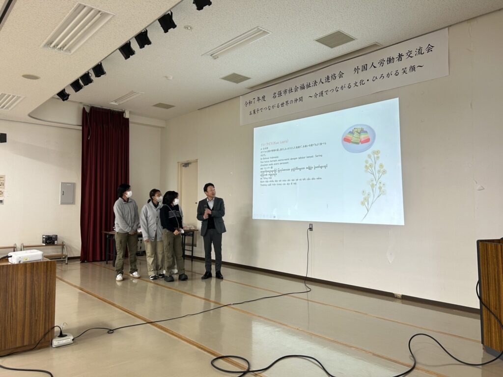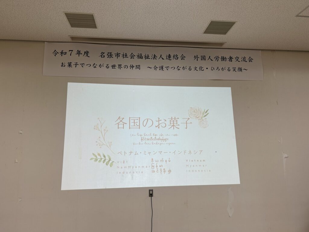 「お菓子でつながる世界の仲間 〜介護でつながる文化・ひろがる笑顔〜」をテーマに、各国のお菓子を紹介しあったり、実際にお菓子を食べながら交流をはかりました!外国人の皆さんが名張で安心して暮らし、働き続けられる環境づくりのため交流会を通じて言語や文化を超えてあたたかいつながりができればと思い昨年より外国人労働者の交流会を開催しています。今回の交流会では、名張市内の福祉施設で働く外国人労働者20名が参加していただきました。参加いただいたのはベトナム、ミャンマー、インドネシアから来ていただいた職員の皆様で、交流会では他施設の職員の方とも楽しく交流を行っていただく事ができました。今回は互いの文化を知る事でより深く交流が行えればと各国のお菓子の紹介を行う事で文化交流を行いました。皆様美味しいお菓子に囲まれてとても楽しいひと時を過ごしていただく事ができました!参加者の中には、手作りでベトナムの「チェー」を参加者のために作ってきていただいたり、是非自国のお菓子を食べて欲しいと参加者に振舞ってくれた方もあり、地域の仲間への温かい想いを感じる事ができ、とても素晴らしい機会となりました。交流会では、⭕️❌クイズやビンゴゲーム等も行われて、他施設の従事者とも深い交流をはかる事ができました!名張の福祉現場で日々見せてくださる献身的な姿勢、そして今日のような笑顔は、この街にとってかけがえのない宝物です。生活習慣の違いや言葉の壁に戸惑うこともあるかもしれませんが、私たちは皆さんが安心して、この名張で自分らしく働き続けられる環境を、これからも皆さんと共に築いていきたいと強く願っています。今日生まれたこの温かな「つながり」を、明日からの活力に変えていただければ嬉しいです。